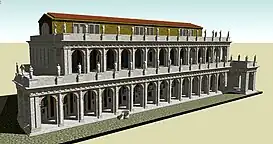 ![]() Reconstrucción generada por ordenador de la basílica tal como debió ser en tiempos de Augusto. | ||