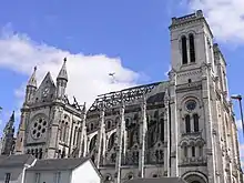 El 13 de junio de 1881, se comenzó la fachada del edificio inspirada a Liberge por la de Notre-Dame de París. Los trabajos en la fachada completaron el edificio en 1901, recibiendo las torres gemelas con una altura de 44 m (sin embargo desprovistas de las dos flechas inicialmente previstas). Con las torres terminadas, se puso la cruz que domina la chancel de los piñones y que fue bendecida por monseñor Rouard.[6]