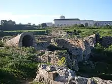 Una parte de las dependencias fue despejada en 1911, en particular, la zona entre la basílica y la rotonda que se despejó en 1912 tras el descubrimiento de numerosos fragmentos de capiteles y de muebles corales.[30] La excavación de la rotonda se efectuó a partir de la cúpula.[31]