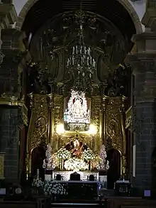 El retablo mayor de la basílica mariana de Teror está destinado a la exaltación de la persona de María Santísima evocando distintos momentos de su vida y de la Santa Eucaristía.