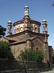 La capilla, de planta central y compuesta por dos salas de planta cuadrada rematadas por cúpulas, constituye el testimonio más evidente de la aplicación de la arquitectura de estilo florentino en Milán en el siglo XV.