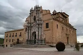 Tiene planta de cruz latina y la fachada principal, realizada con mármoles de la zona, es uno de los mejores ejemplares barrocos de la región. Está declarada Monumento Histórico-Artístico Nacional desde 1944.