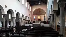 Los cambios en la estructura se realizaron entre los siglos XI y XIII; las bóvedas actuales y la cúpula se construyeron para reemplazar el techo de vigas de madera original. Los grandes ventanales de época romana se rellenaron para reforzar la estructura. El ábside fue reconstruido, con dimensiones reducidas. Por tanto, el interior de la iglesia actual aparece hoy ampliamente definido por la construcción románica .