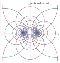 | Log-polar | Circunferencia, recta | Para equivalen a las coordenadas polares | |