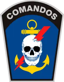 El símbolo identificativo de los Comandos Anfibios es su breve de apariencia hostil con un cráneo traspasado por un rayo; significando la muerte del enemigo y la velocidad y la violencia en sus acciones, un ancla; significando fidelidad a la Marina de Brasil y la capacidad de realizar operaciones acuáticas, un par de alas; significando capacidad de operar por medios aéreos, y una lápida azul; significando la oscuridad, ambiente formidable para las actividades de los Comandos Anfibios.