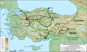 ![]() Mapa de los enfrentamientos entre bizantinos y árabes en 837–838. | ||||