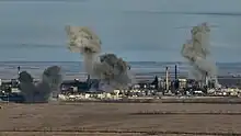 Planta química, siendo bombardeada por el ejército ruso al ser uno de los principales bastiones ucranianos de la ciudad.