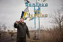 Ese mismo día las Fuerzas Armadas de la Federación rusa izaron banderas en el cartel de la entrada de Avdeevka donde el presidente de Ucrania había estado previamente en una visita oficial al frente.