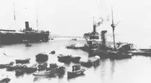 Los dos cruceros italianos arribaron ante el puerto enemigo e hicieron un disparo de fogueo a los barcos anclados en la rada.[1] El jefe de flotilla otomana, que se hallaba a bordo de la Avnillah, despachó una lancha a parlamentar con los buques enemigos. Mientras, ordenó al Angora que se colocase junto al muelle. La lancha volvió a las siete y media con un ultimátum del contraalmirante Di Revel para el valí de Beirut en el que se le exigía la entrega de los dos barcos de guerra antes de las nueve de la mañana.[6] El mensaje llegó a su destinatario a las ocho y media, que se avino a ello, pero no tuvo tiempo de dar la orden antes del plazo fijado por el enemigo. Por consiguiente, los italianos emprendieron el bombardeo de los barcos otomanos a las nueve.[7]