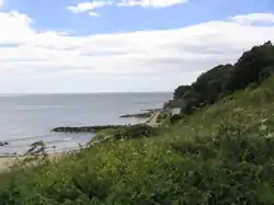 ![]() Monks Bay en 2008. Las tropas francesas avanzaron desde la bahía hasta llegar a St Boniface Down, donde tuvo lugar la batalla. | ||||
