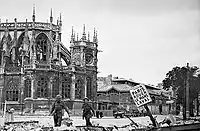 Más al este, los británicos avanzan lentamente por unas calles irreconocibles por las ruinas provocadas por los intensos y repetidos bombardeos aliados, que dejaron también enormes cantidades de civiles muertos.