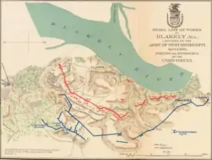 - «Battle of Fort Blakeley». EncyclopediaOfAlabama.org. 2017. p. 1, paragraph 7. Consultado el 7 de noviembre de 2017.