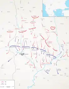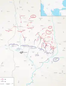 - El Segundo Ejército, al mando de Stepa Stepanović, compuesto por una división serbia y una búlgara (74 000 hombres), desplegados en el área alrededor de Kyustendil, fue asignado al ataque más oriental, con el objetivo de atacar el flanco derecho del enemigo.[9]