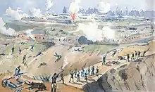 ![]() Óleo de Juan Lepiani titulado El tercer reducto (1894) que representa una escena de la batalla de Miraflores. | ||||