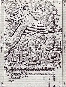 A lo largo de la batalla solo el ala izquierda del ejército de los Habsburgo vio la acción principal. Había un denso bosque frente al ala derecha del ejército que impedía que éste atacara. A pesar de esto, intentó una maniobra de desvío a la derecha para forzar la reubicación y la retirada de los otomanos, pero sus columnas se perdieron en el bosque.