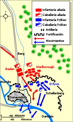 Aunque Marlborough sabía que un ataque frontal al fuerte de Schellenberg sería muy duro, estaba convencido de que era el único modo de conquistar rápidamente la ciudad de Donauwörth.[18]