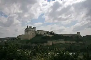 ![]() Vista del monasterio y castillo de Uclés, escenario principal de la batalla. | ||||