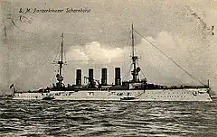 Siete horas después, la persecución todavía continuaba. A 12 km de Puerto Stanley, el Scharnhorst recibió una salva del Invincible sobre un lateral, sin que eso le hiciese demasiado daño. Sin embargo, a las 15 horas, el Scharnhorst recibió nuevamente una nueva andanada que destruyó la cubierta y creó vías de agua, por lo que comenzó a hundirse lentamente. Una hora después, en un último esfuerzo, el Scharnhorst intentó acortar distancias, acercándose escorado y semihundido hacia el Invincible con la intención de responder al fuego, pero la proa se metió bajo el agua y el barco acabó hundiéndose de morro con las hélices todavía girando. El almirante Maximilian von Spee y los 795 hombres de la tripulación quedaron atrapados en el buque y se hundieron con él.