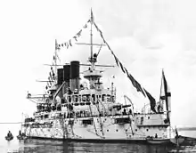 | Mikasa | 20 impactos y con la torreta de 305 mm de popa inutilizada | 125 bajas |