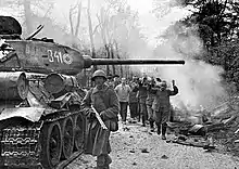 Un grupo de combate soviético era una unidad de ataque mixta de unos ochenta hombres en grupos de asalto de seis a ocho soldados, estrechamente apoyados por artillería de campo. Estas eran unidades tácticas que podían aplicar las tácticas de lucha casa por casa que se habían visto obligadas a desarrollar y refinar en cada Festungsstadt (ciudad fortaleza) que habían encontrado desde Stalingrado.[15]
