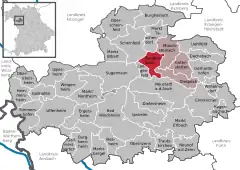 Se encuentra ubicado al oeste del estado, en la región de Franconia Media, a poca distancia al sur de la orilla del río Meno —un afluente derecho del Rin— y al este de la frontera con el estado de Baden-Wurtemberg.