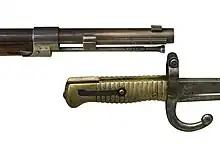 La bayoneta es un arma blanca que se acopla o cala al extremo del cañón del fusil o de la carabina para combatir cuerpo a cuerpo.[1][2] La bayoneta más común desde el siglo XVII hasta el XIX era la llamada de cubo, consistente en un cilindro metálico hueco al que se adosaba una cuchilla triangular, que fue especialmente utilizada en los mosquetes. En el siglo XX pasó a ser un cuchillo que se puede acoplar al arma para permitir su uso como bayoneta.