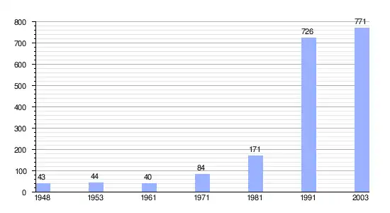 | Gráfica de evolución demográfica de Bečići entre 1948 y 2003 |