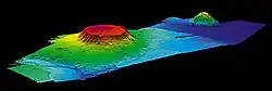 ![]() Representación del Bear Seamount, con el Physalia Seamount en el plano posterior. | ||