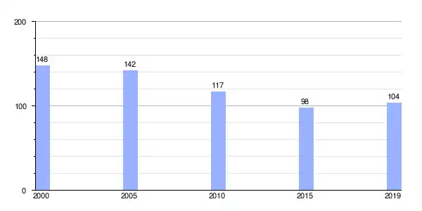 | Gráfica de evolución demográfica de Beascós (parroquia) entre 2000 y 2019 |