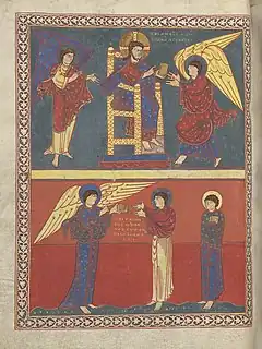 Se destaca una "'Maiestas Domini", a doble página que recuerda a las existentes en las portadas románicas francesas, por lo que, una vez más, se establecen lazos de conexión entre los iluminadores de manuscritos y los artistas que trabajaban en las iglesias o catedrales de la época.