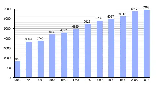 Los datos demográficos contemplados en este gráfico de la comuna de Beaupréau[3] se han cogido de 1800 a 1999 de la página francesa EHESS/Cassini, y los demás datos de la página del INSEE.[4]