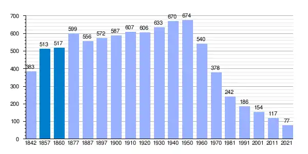 | Gráfica de evolución demográfica de Becedillas[2] entre 1842 y 2021 |