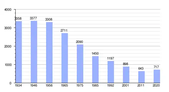 Gráfica de evolución demográfica de Beglezh entre 1934 y 2020