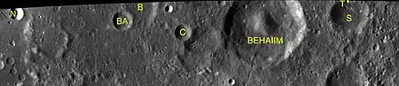 Por convención estos elementos son identificados en los mapas lunares poniendo la letra en el lado del punto medio del cráter que está más cerca de Behaim.