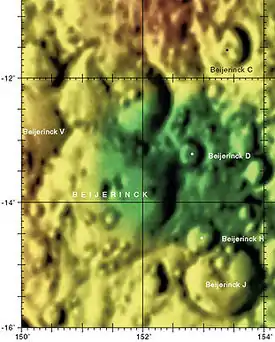 Por convención estos elementos son identificados en los mapas lunares poniendo la letra en el lado del punto medio del cráter que está más cerca de Beijerinck.
