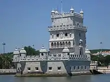 - Torre de Belém ( en portugués: Torre de Belém ) - construida en el afloramiento rocoso/isla a lo largo del margen norte del río Tajo como parte de un sistema defensivo para proteger el acceso al estuario del Tajo previsto por Juan II de Portugal, es uno de los símbolos icónicos de la parroquia de Belém. Originalmente, la Torre de San Vicente ( en portugués: Torre de São Vicente ), fue mandada edificar por Manuel I de Portugal (1515-1520) para custodiar la entrada al puerto de Belém. Se encontraba en una pequeña isla en el lado derecho del Tajo, rodeada de agua.