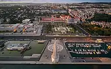 - Monumento a los Descubrimientos ( en portugués: Padrão dos Descobrimentos ) - Situada en el borde de la orilla norte del Tajo, esta losa de hormigón de 52 metros de altura fue erigida en 1960 para conmemorar el 500 aniversario de la muerte de Enrique el Navegante. El monumento está esculpido en forma de proa de barco, con decenas de figuras de la historia portuguesa siguiendo una estatua del infante Enrique esculpida en bajorrelieve. Adyacente al monumento hay una plaza de empedrado portugués en forma de mapa, que muestra las rutas de varios exploradores portugueses, durante la Era de los Descubrimientos.
