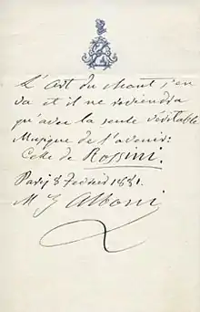 "El arte del canto se va, y estará de regreso sólo con la única música verdadera del futuro: la música de Rossini."