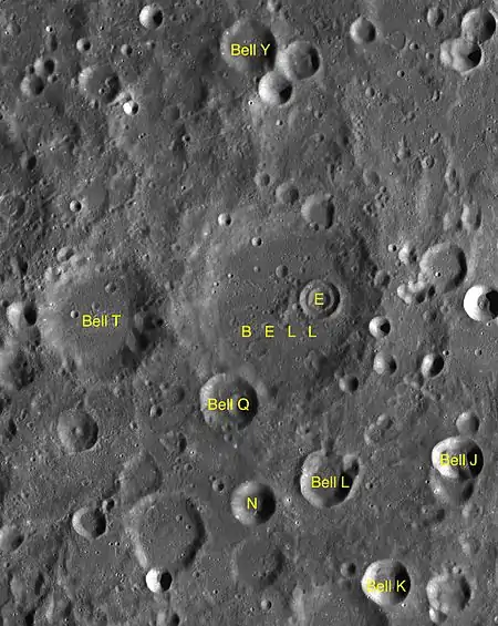 Por convención estos elementos son identificados en los mapas lunares poniendo la letra en el lado del punto medio del cráter que está más cerca de Bell.