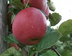 Las manzanas son de color amarillo apagado a rojo claro. El color depende de la superficie. En los huertos con pasto, las manzanas se vuelven más fuertes que en los huertos con tierra desnuda.