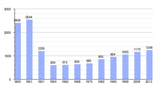| Gráfica de evolución demográfica de Bellefont-la-Rauze entre 1800 y 2013 |