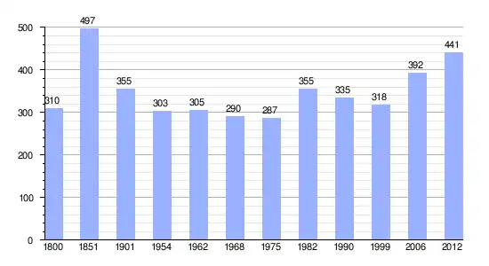 | Gráfica de evolución demográfica de Bellegarde entre 1800 y 2012 |