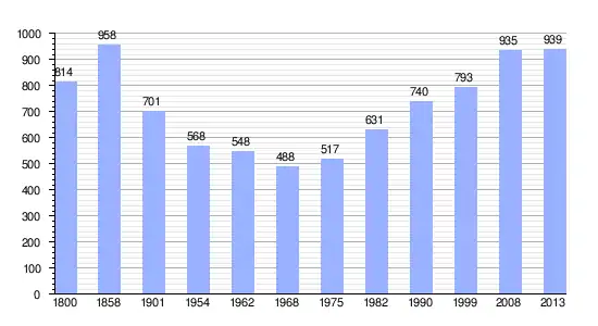 Los datos demográficos contemplados en este gráfico de la comuna de Bellentre[4] se han cogido de 1800 a 1999 de la página francesa EHESS/Cassini, y los demás datos de la página del INSEE.[5]