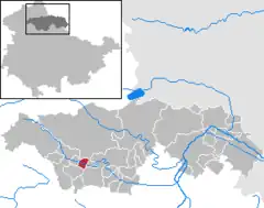 Se encuentra ubicado a poca distancia al sur de la frontera con el estado de Sajonia-Anhalt.