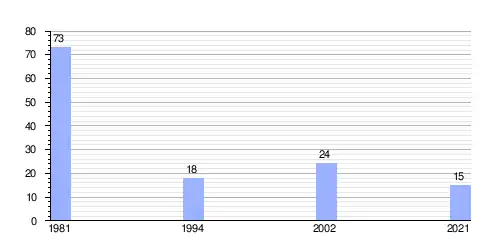 | Gráfica de evolución demográfica de Belovodica entre 1981 y 2021 |