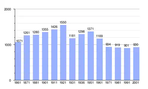 Gráfica de evolución demográfica de Belsito entre 1861 y 2001