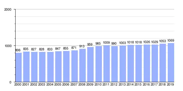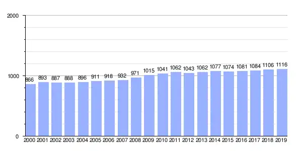 | Gráfica de evolución demográfica de Bembibre (lugar) entre 2000 y 2019 |