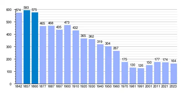| 1900 | 1910 | 1920 | 1930 | 1940 | 1950 | 1960 | 1970 | 1981 | 1991 | 2000 | 2005 | 2019 | 2023 |