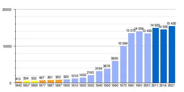 Población de derecho (1842-1897, excepto 1857 y 1860) según los censos de población del siglo XIX. Población de hecho (1857 y 1860) según los censos de población del siglo XIX. Población de derecho (1900-2001) según los censos de población del INE. Población según el padrón municipal del INE (2011-2021). |