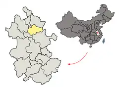 La ciudad de Bengbu se encuentra a 135 km al norte de Nanjing, en la orilla del río Huai. Se divide en dos partes: mayor Bengbu, en la orilla sur del río y menor Bengbu, en la orilla norte.